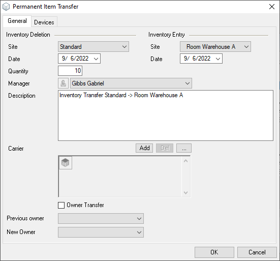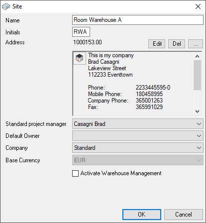 In a room warehouse, you can store Items and Devices that belong fixed to this specific room by means of an inventory transfer. Room warehouses are handled like separate Sites where items are stored and can be transferred from the main warehouse to the room warehouse. The room warehouse must first be created.