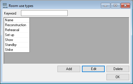 In addition to the rooms, you can enter as many types of room uses in the master data as you wish.