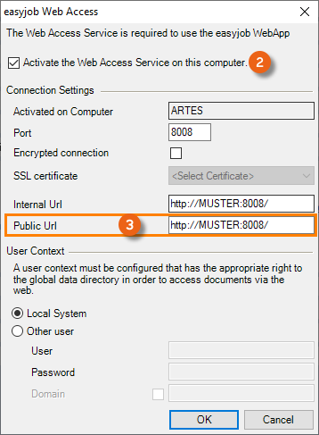 Activating the easyjob Web Access Service