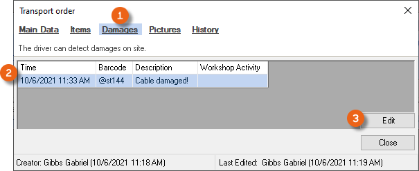 If there is any damage , all items/devices for which damage was recorded in the Venue Equipment Tracker App are displayed . You can edit the damage .