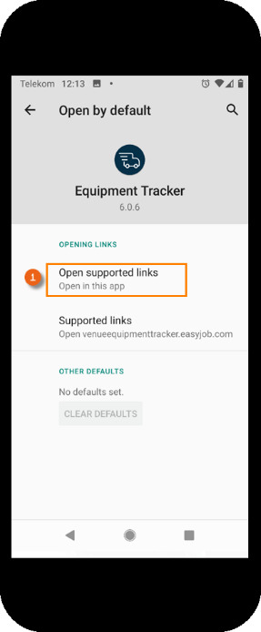Depending on which e-mail program or browser is used, a setting may be necessary that specifies that the link should be opened automatically with the Equipment Tracker App . After you have received a notification with the link for the transport order, open the link with the Equipment Tracker App , the transport order is opened .