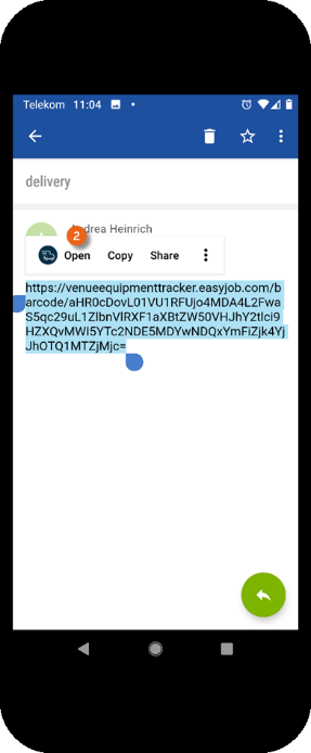 If you want to further edit the transport order with the Equipment Tracker App, you can either open the link created in easyjob (e.g. from an e-mail) or scan the transport order QR code in the Equipment Tracker App.