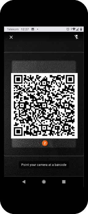 To scan a transport order using a QR code, start the Equipment Tracker App using your end device and click Add . Point your camera at the QR code . As soon as it is detected, the transport order will open.