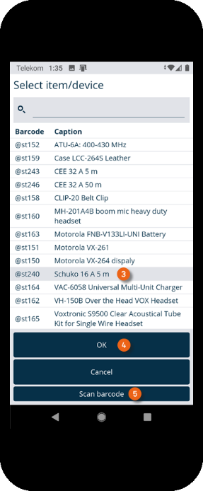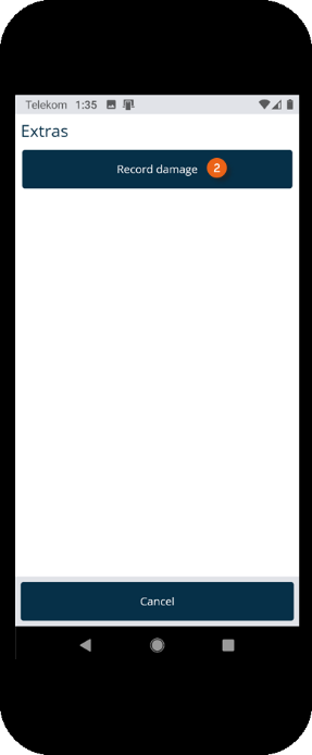 If an item is damaged, you can document the damage in the Equipment Tracker App. To do so, tap Extras and Record damage in the transport order. Select the item from the list and click OK or go to Scan barcode and scan the item for which you want to record the damage.