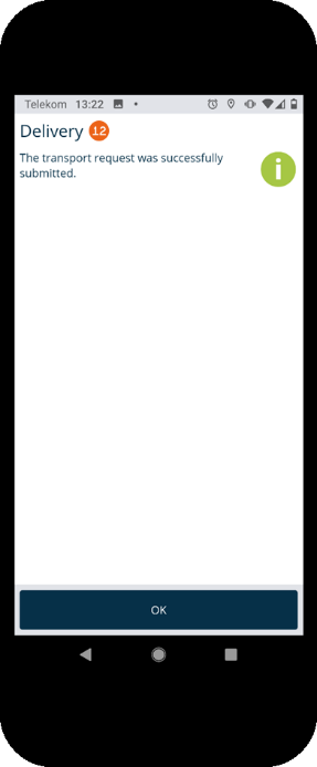 The further processing of the transport order in the Equipment Tracker App is described in more detail in Transport order in the Equipment Tracker App.