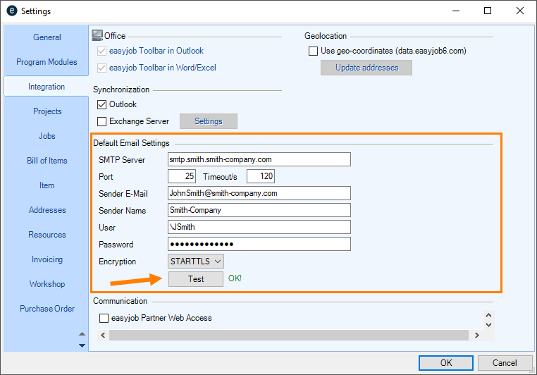 easyjob must be restarted to activate the settings.