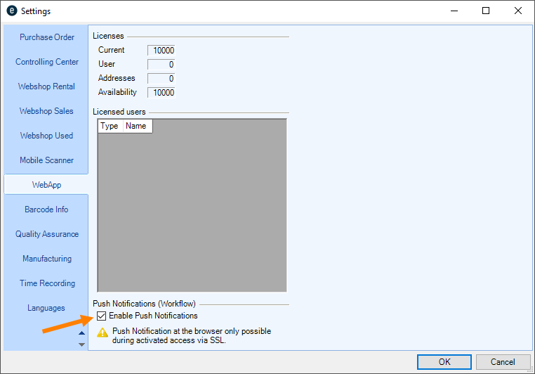 3. Check Enable Push Notifications