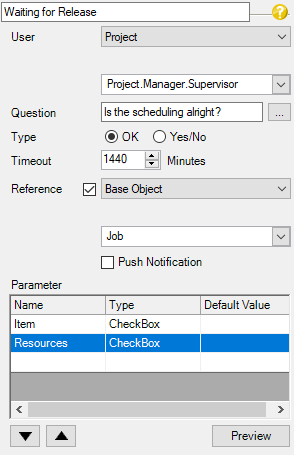 | Parameter Query (Dialog) | With the parameter query, the user is directly addressed on the user interface to make an entry, for example, or to confirm with Yes/No/OK |