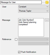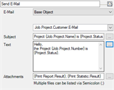 Depending on the selection in the Parameter Dialog, Parameter 1 is used for example, for the e-mail recipient, for the address of the project customer or the job delivery address. The recipient of the email is set with the action Send e-mail.