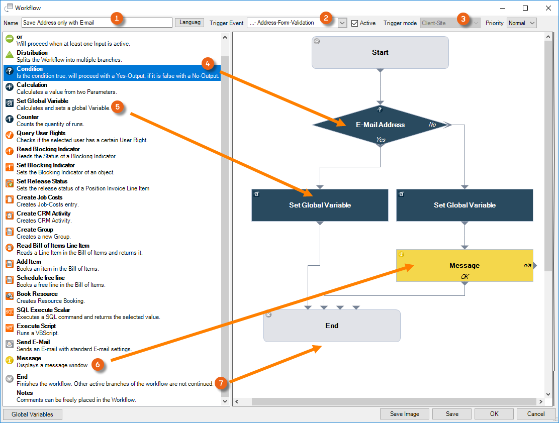 Workflow definition 'Save address only with e-mail address' step by step