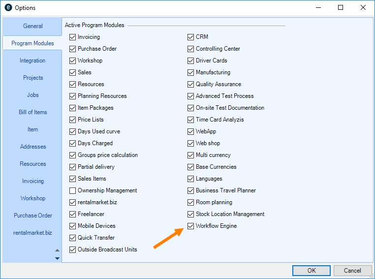 Go to the easyjob program settings to activate the easyjob Workflow Engine module. A separate installation is not required.