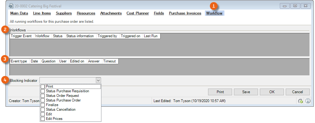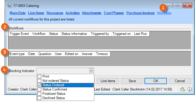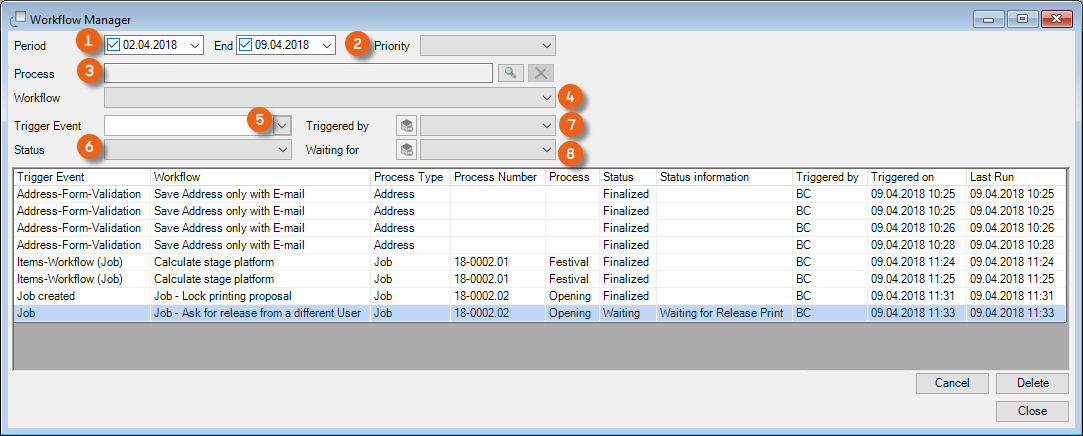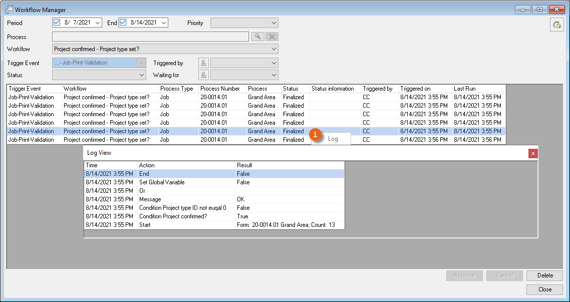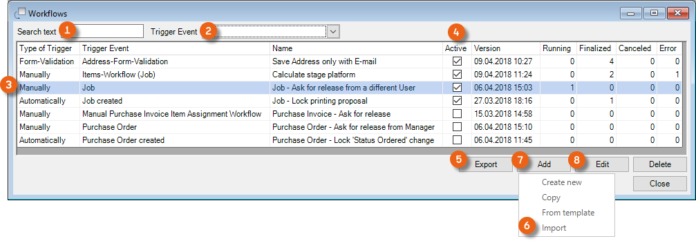 The type of Workflow is defined by an automatic, manual or Validation Action, which causes the Workflow to start. The respective Trigger Event for the actual Workflow is listed in the Trigger Event.